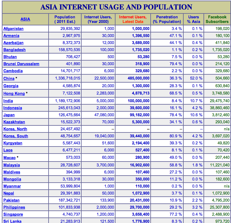yang dapat memperkirakan pengguna Internet adalah Asia Top Internet Countries.